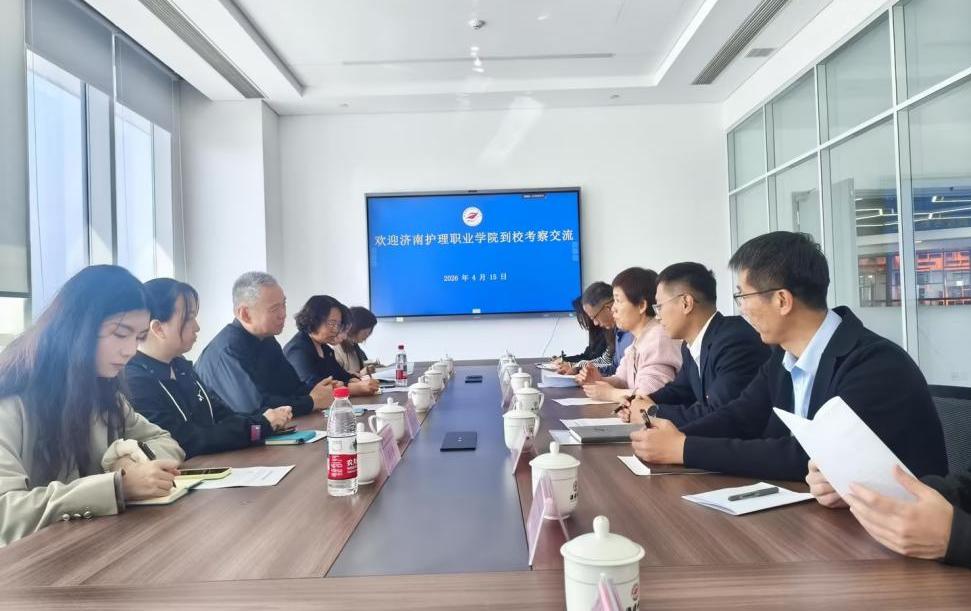 4月15日,济南护理职业学院党委委员、副院长高天一行6人来学校图书馆考察交流。党委委员、副校长周巧玲出席活动,图书馆有关人员参加实地考察和座谈交流。